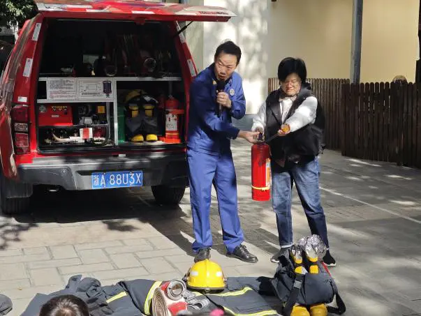 孩子们围着这个“红色大家伙”,充满了好奇。消防员叔叔打开车门,向大家介绍了灭火器、消防服、救援头盔等“秘密武器”。
