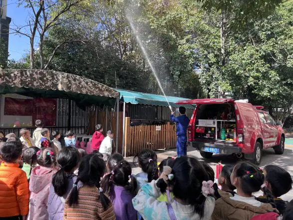 消防员叔叔展示了高压水枪喷水,“快看!水喷得好高呀!”只见水柱像一条巨龙冲向天空,所有小朋友都兴奋地拍手欢呼:“好厉害!”这次零距离的接触,让孩子们直观地了解了消防装备的强大威力,对消防员叔叔也更加敬佩。