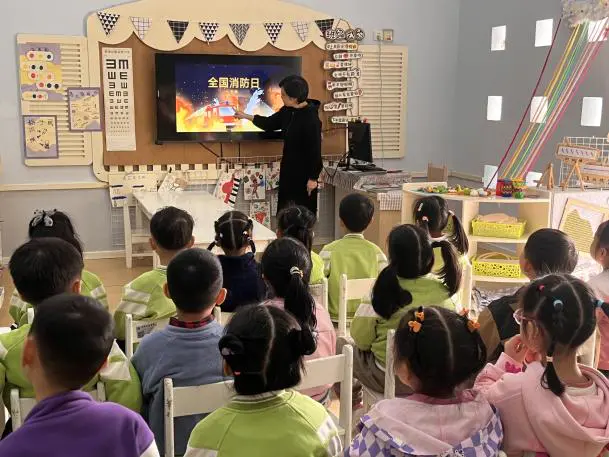 “着火了我们该怎么办?”“报警电话是多少?”在有趣的消防安全小课堂上,老师们通过生动的故事、图片和动画,带领孩子们认识消防器材、学习逃生知识。宝贝们懂得了遇到火灾要冷静,用湿毛巾捂住口鼻,弯腰快速撤离。小小的课堂,传递着大大的安全智慧。
